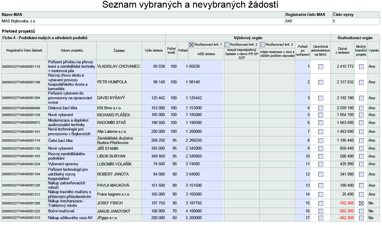 - Způsob výběru projektů (Postupy pro případ shodného počtu bodů...)