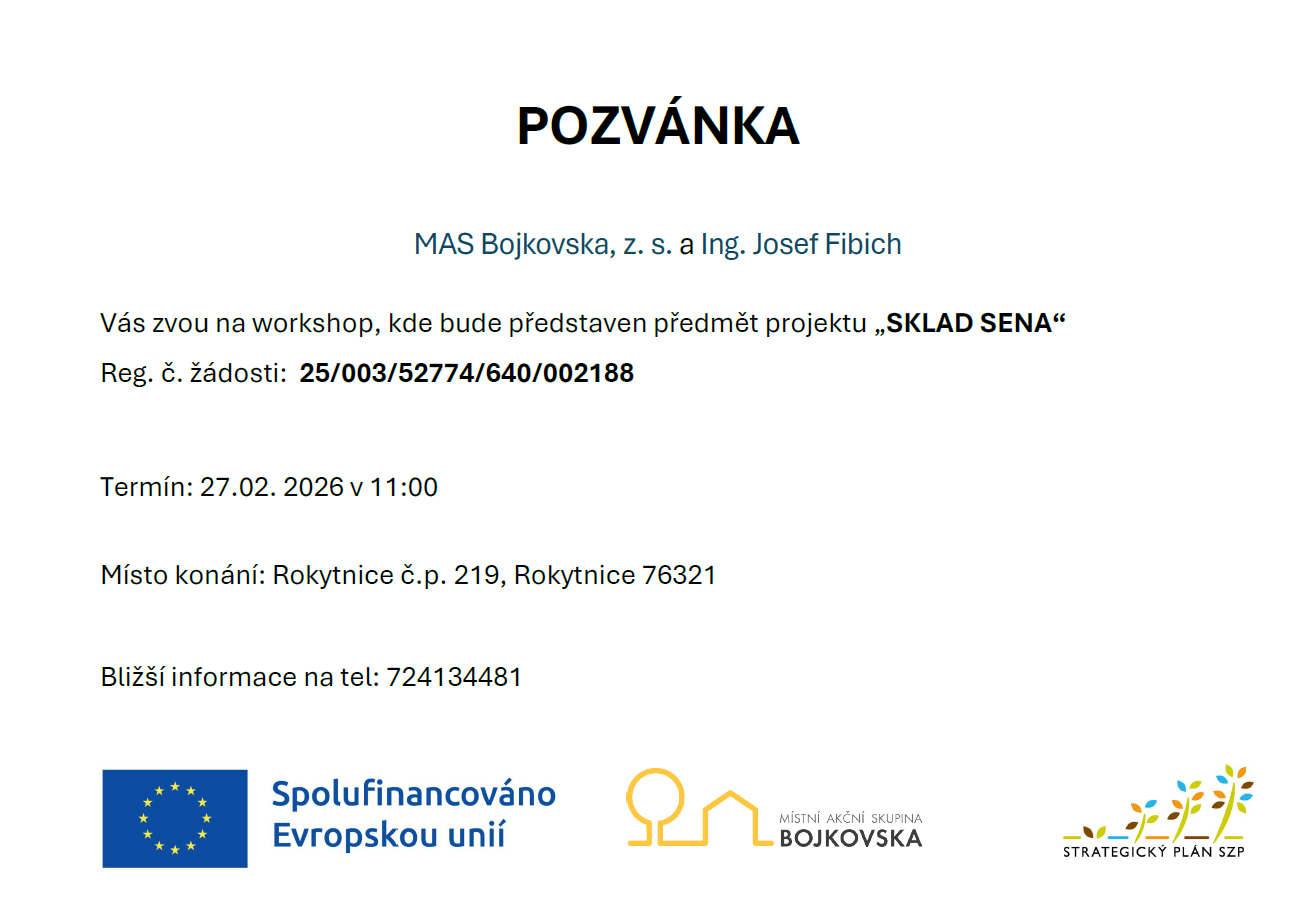 MAS Bojkovska, z. s. a Ing. Josef Fibich Vás zvou na workshop, kde bude představen předmět projektu „SKLAD SENA“