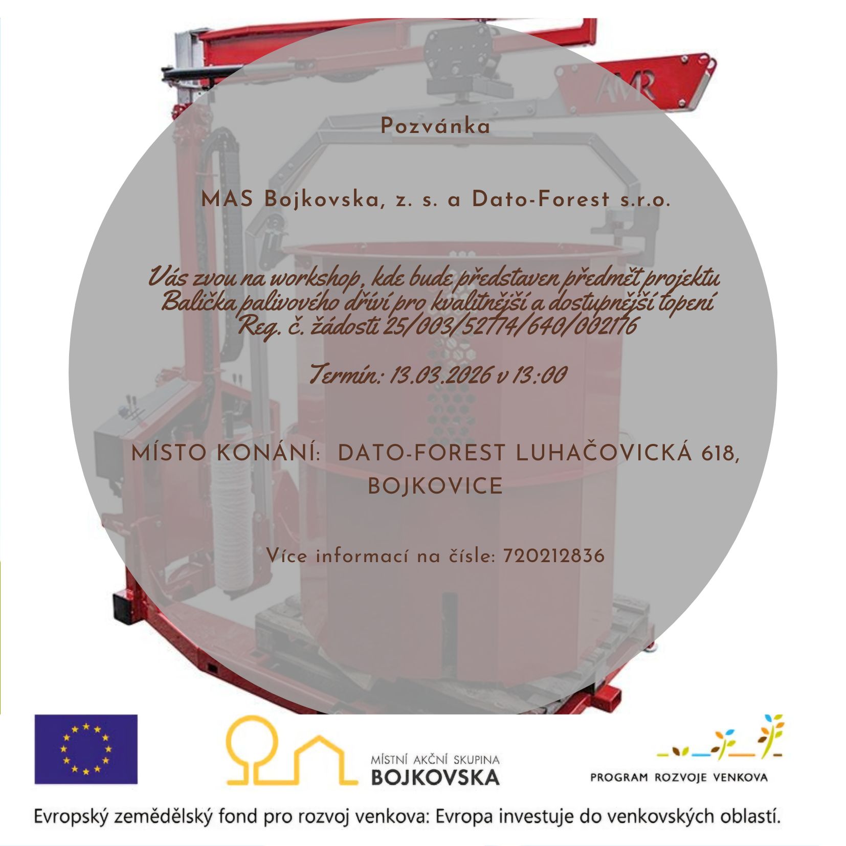 MAS Bojkovska, z. s. a Dato - Forest s.r.o. Vás zvou na workshop, kde bude představen předmět projektu „Balička palivového dříví pro kvalitnější a dostupnější topení“